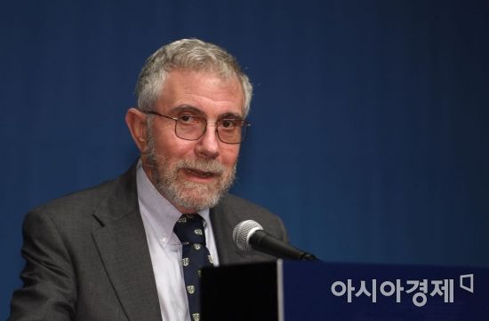 폴 크루그먼 뉴욕시립대 석좌교수가 지난 6월28일 서울 중구 신라호텔에서 '경제 패러다임 대전환 : 사람중심경제'란 주제로 열린 2018 국민경제 국제컨퍼런스에서 기조연설을 하고 있다./김현민 기자 kimhyun81@
