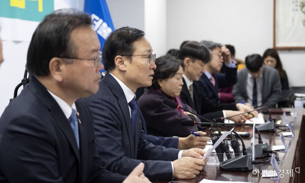 홍영표 더불어민주당 원내대표가 14일 국회에서 열린 자치경찰제도입 당정청 회동에 참석, 모두 발언을 하고 있다./윤동주 기자 doso7@