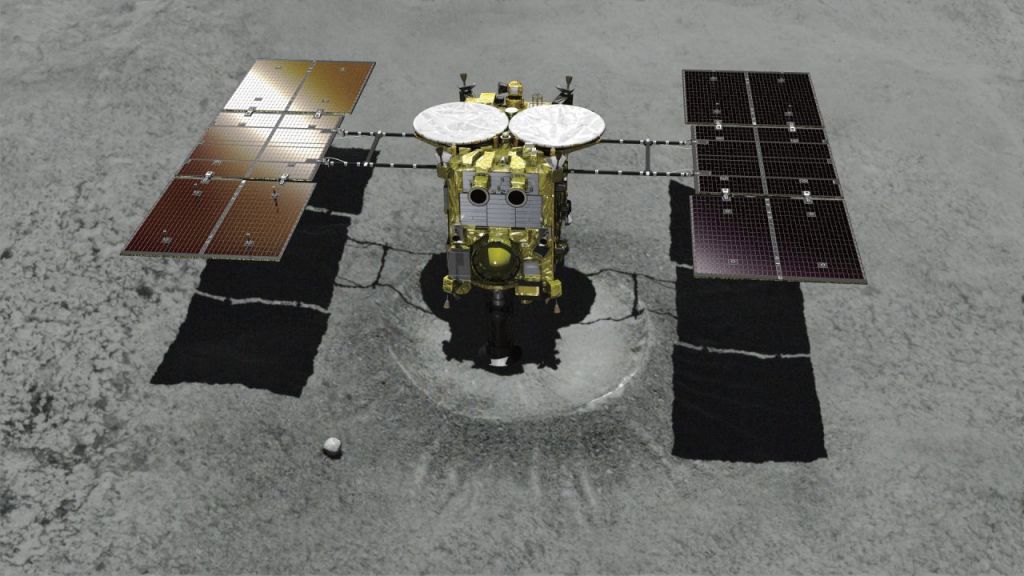 2014년 12월 가고시마현 다네가시마 우주센터에서 발사된 하야부사2는 약 3년 6개월에 걸쳐 태양 주위를 돌면서 약 30억㎞를 비행해 작년 6월 류구 상공에 도착했다. 주판알 모양인 류구는 원시 소행성 형태로 태양계 형성 초기의 물질을 간직한 것으로 과학자들은 추정하고 있다.