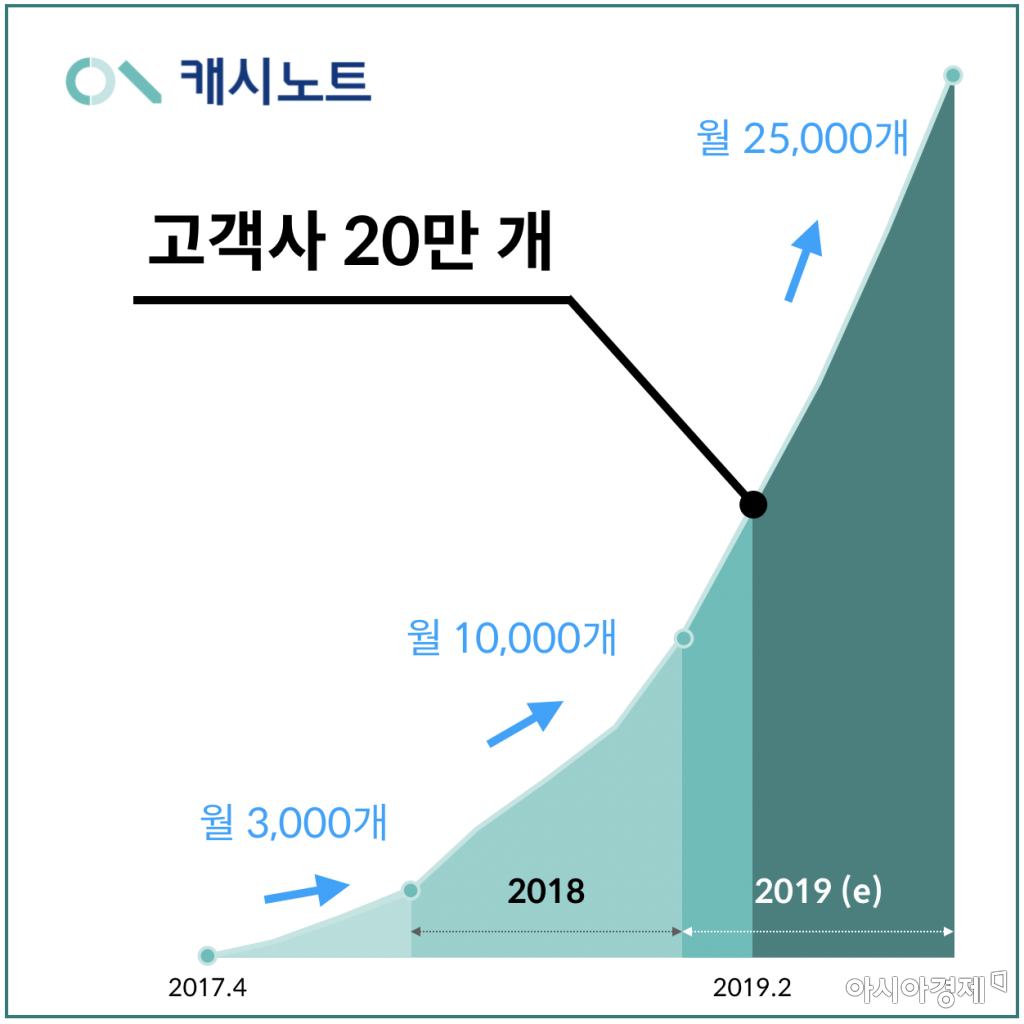 캐시노트가 관리하는 사업장들의 월 매출은 5조원, 누적 매출은 47조원에 달한다. 특히 외식 업종의 점유율이 높아 전국 음식점 4곳 중 1곳이 캐시노트를 이용하고 있다.