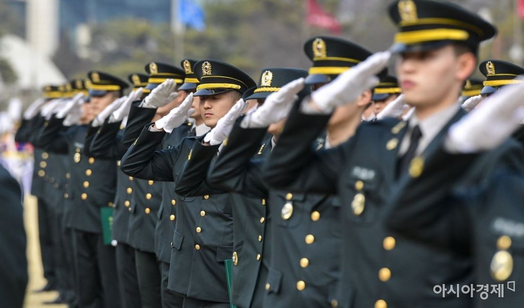 27일 서울 노원구 육군사관학교에서 열린 '75기 졸업 및 임관식'에서 졸업생들이 경례하고 있다./강진형 기자aymsdream@