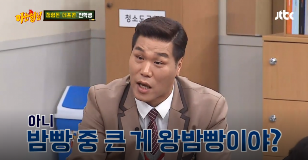 서장훈이 “밤빵 중에 큰 게 ‘왕밤빵’인 거냐”고 묻자, 데프콘은 “너가 다니는 백화점에는 없다”고 말했다. 데프콘은 “밤빵은 5개에 2500원이고, 왕밤빵은 1개에 2500원”이라며 설명했다.
