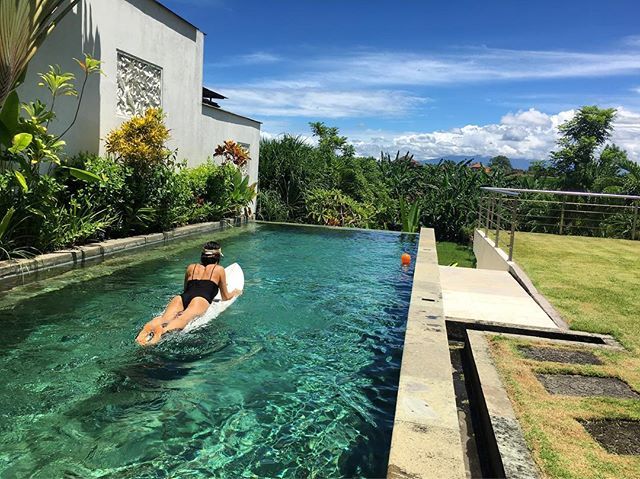 사진 속에는 발리의 한 야외 수영장에서 일광욕을 즐기는 가희의 모습이 담겨있다.