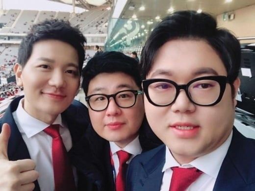 왼쪽부터 김정근 캐스터, 서형욱 해설위원, 감스트(사진=감스트 SNS 캡처)