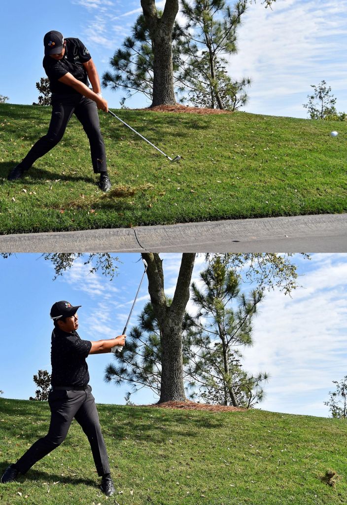 안병훈(28ㆍCJ대한통운)이 지난 15일(한국시간) 미국 플로리다주 폰테베드라비치 소그래스TPC(파72)에서 열린 미국프로골프(PGA)투어 '제5의 메이저' 더플레이어스챔피언십(1250만 달러) 1라운드 당시 5번홀(파4)에서 트러블 샷을 하는 장면이다. 아마추어골퍼들이 가장 어려워하는 발끝 내리막 상황이다. 샷을 하는 과정에서 본능적으로 몸을 일으키기 쉽다. 토핑이 나오는 이유다.