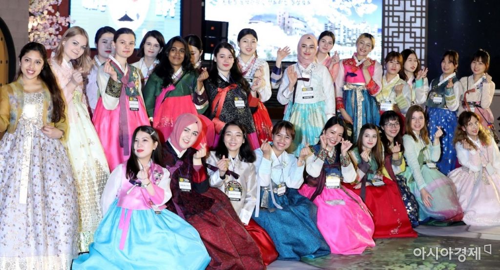 4일 서울 강남구 코엑스에서 열린 '2019 내 나라 여행박람회'에서 50여 개국 외국인 유학생으로 구성된 글로벌 홍보 서포터즈들이 기념촬영을 하고 있다. 이번 박람회는 지역에서의 체류 시간을 연장하는 데 야간 관광콘텐츠가 중요한 역할을 한다는 점에 주목해 '내 나라 인생야행'을 주제로 열렸다. 일몰, 석양, 야경, 야시장 등 야간에 검험할 수 있는 모든 여행 요소들로 꾸며졌다./김현민 기자 kimhyun81@