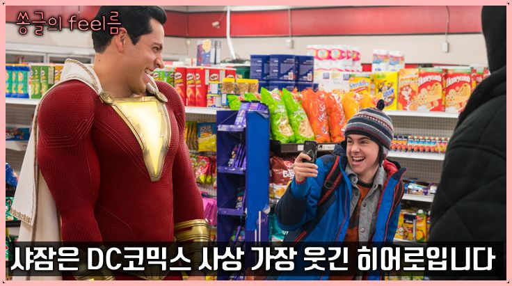 [아시아경제 송윤정 기자, 박수민 피디] DC코믹스 역사상 가장 코믹한 히어로 무비가 탄생했다. DC 확장 유니버스의 7번째 영화 ‘샤잠!’이다. 샤잠은 우리가 기존에 봐왔던 히어로들과는 차원이 다른 캐릭터다. 유치한데 이상하게 정이 가고, 소위 ‘병맛’스러우면서도 어쩐지 마음이 끌리는 독특한 매력의 소유자다. 게다가 영화 속에 등장하는 DC코믹스의 무수한 이스터에그는 관객들로 하여금 앞으로 나올 DC 확장 유니버스의 미래를 점쳐볼 수 있게 한다.