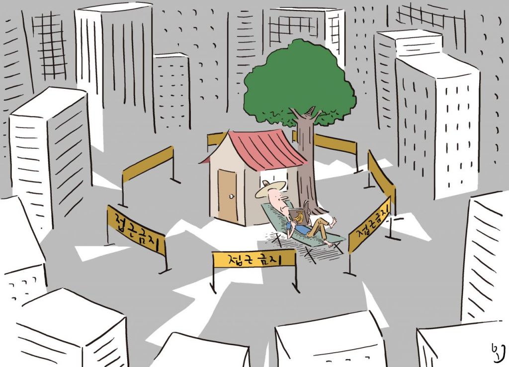 혐오시설이든, 편익시설이든, 관공서든 무조건 우리 동네는 들어오면 안된다고 반대하는 것을 '바나나(BANANA)' 현상이라고 합니다. "어디에든 아무것도 짓지 말라"는 뜻입니다. 맹목적인 지역 이기주의, 공공정신의 약화현상 등으로 분석됩니다. [그림=오성수 화백]