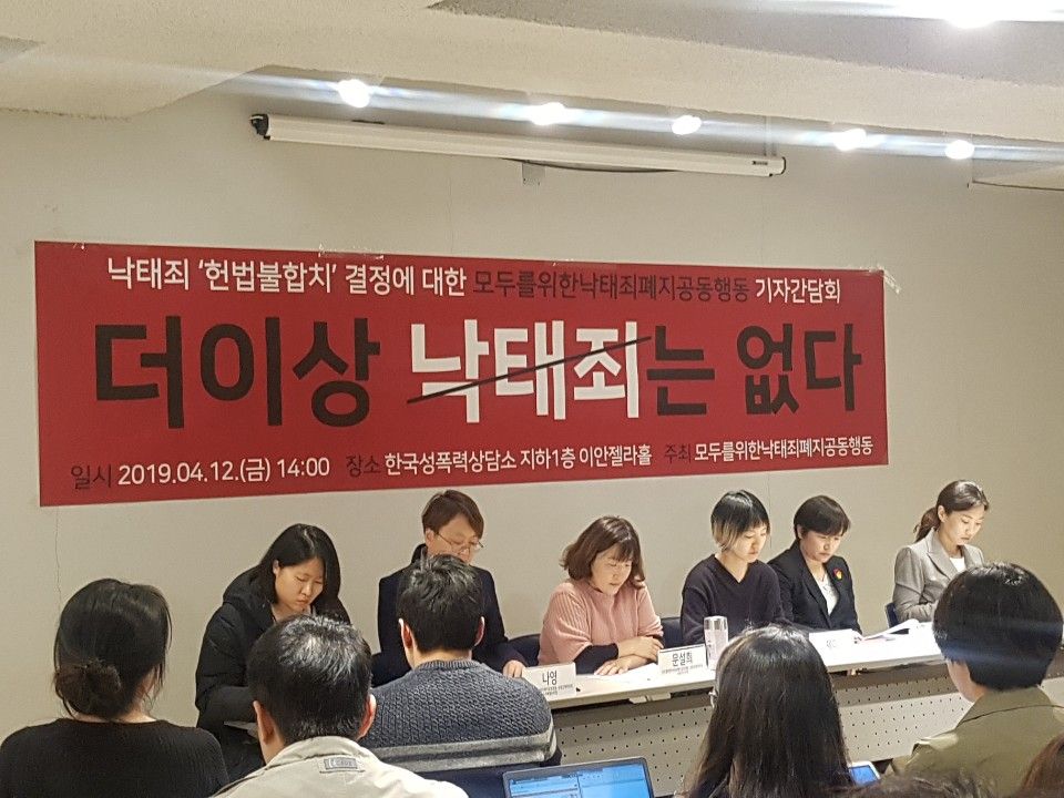 모두를 위한 낙태죄 폐지 공동행동은 12일 서울 마포구 합정동 한국성폭력상담소에서 기자간담회를 열고 헌법재판소 결정 내용에 관한 세부 입장과 시사점 등에 대해 발표하고 있다.