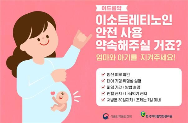 앞서 지난해 7월에는 이 성분을 위해성관리계획(RMP) 대상으로 지정했다. 제약사는 6월부터 태아 기형 유발 위험성과 주의사항을 포함한 안내서, 의·약사용 체크리스트, 환자용 동의서 등을 관련 병의원·약국에 배포하고 식약처에 이행상황을 보고해야 한다.