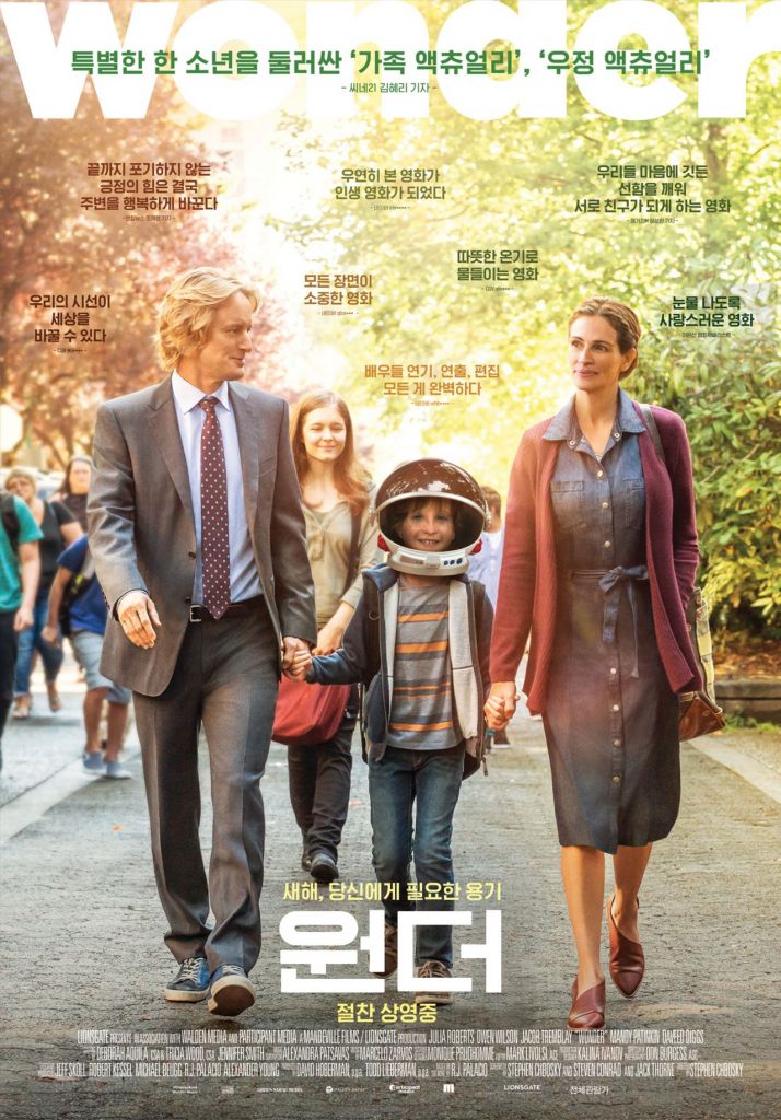 감독은 스티븐 크보스키로 영화 ‘월플라워’ 등이 그의 대표작이다. 영화에는 줄리아 로버츠(이자벨 풀먼 역), 제이콥 트렘블레이(어기 풀먼 역), 오웬 윌슨(네이트 풀먼 역), 이자벨라 비도빅(비아 풀먼 역), 노아 주프(잭 윌 역) 등이 출연한다.