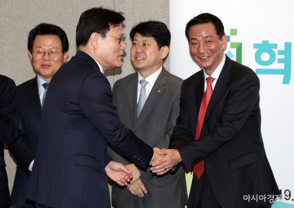 왼쪽 두번째에서부터 오른쪽으로 최종구 금융위원장, 유광열 금융감독원 수석부원장, 권용원 금융투자협회장./문호남 기자 munonam@