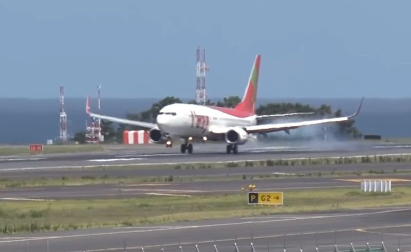 제주공항에 착륙하는 항공기의 모습. [사진=유튜브 화면캡처]