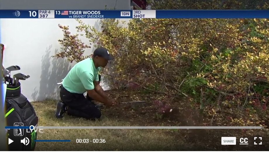 타이거 우즈가 델테크놀러지스매치플레이 조별리그 2차전 당시 10번홀에서 트러블 샷을 시도하고 있다.
