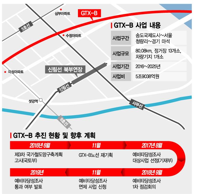 GTX-B노선 예비타당성 조사 결과는 이르면 9월 전에 발표될 전망이다. 임영진 기획재정부 타당성심사과장은 지난 7일 국회에서 열린 한 토론회에 참석해 "9월 예산 편성 전까지 (예타 결과를) 발표할 수 있도록 최대한 노력하겠다"고 강조했다.