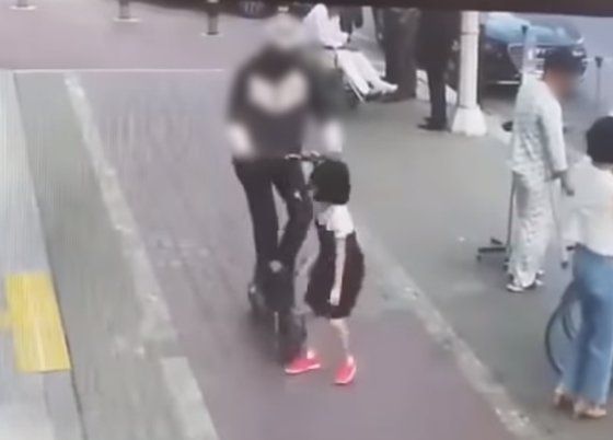 해당 영상에는 전동킥보드를 탄 남성이 인도 위를 지나다 한 어린이를 치는 장면이 담겨있다. 전동킥보드와 충돌한 어린이는 바닥에 넘어지고, 가해 남성은 피해아동의 부모로 추정되는 이들과 이야기를 나누다 곧 전동킥보드를 타고 자리를 뜬다. 피해 아동의 부모가 곧바로 이 남성을 쫓아 뛰어가는 모습도 영상에 담겼다.