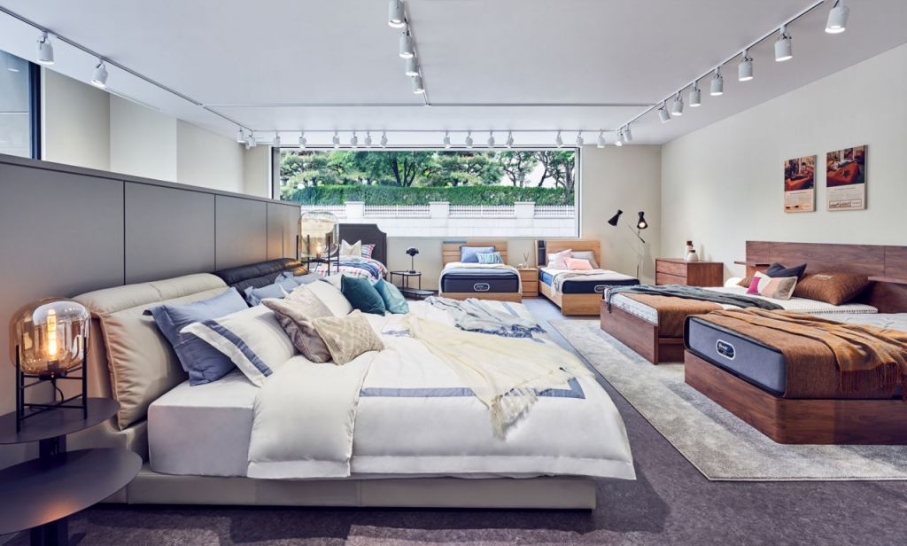 시몬스 도곡점에는 대표 매트리스 컬렉션 '뷰티레스트'와 각종 프레임, 라이프스타일 컬렉션 '케노샤'의 퍼니처, 베딩 제품 등이 전시된다. 시몬스 침대 고유의 매트리스 설계 노하우를 확인할 수 있는 '테크니컬 존(Technical Zone)'도 배치됐다. 탄력, 지지력, 형태가 서로 다른 포켓스프링을 조합하고 배치하는 '조닝(Zoning) 시스템'과 50여 종의 프리미엄 내장재를 포켓스프링 위에 조합하는 '레이어링(Layering) 기술'을 경험해볼 수 있다.
