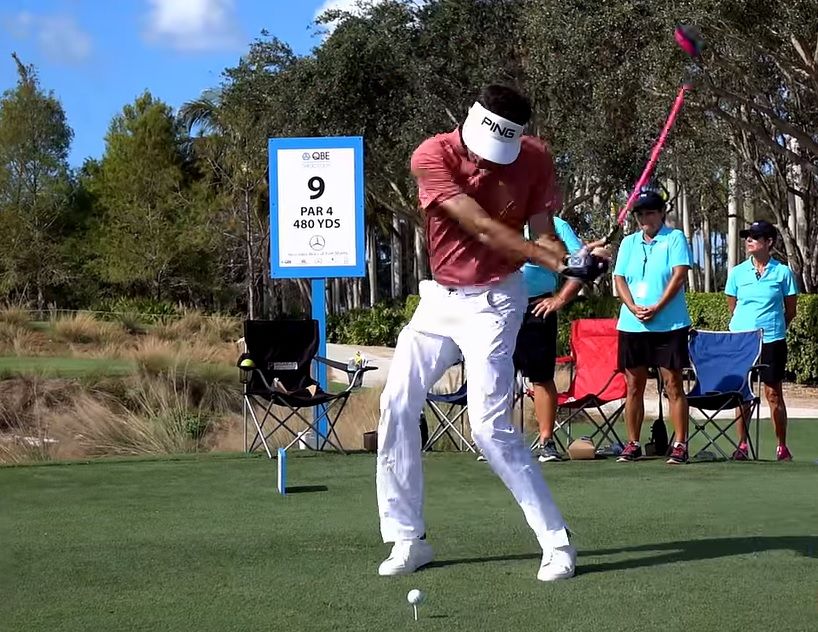 드라이버 타구 스피드가 시속 310㎞로 알려진 미국 프로골프 선수 버바 왓슨의 역동적인 드라이버샷 모습. [사진=유튜브 화면캡처]