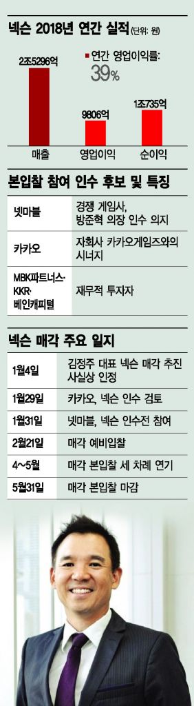 하지만 김 대표는 여기서 한발 더 나갔다. 지난해 1조원에 달하는 영업이익을 기록한 넥슨의 기업 가치에 더불어 NXC가 인수한 고급 유모차 브랜드 스토케, 가상화폐 거래소 비트스탬프 등 다른 기업의 가치도 높게 봤다. 일각에서는 김 대표가 15조원 이상을 원하고 있어 매수자들이 주저하고 있다는 얘기가 나왔다. 본입찰에 참여한 넷마블, 카카오, MBK파트너스, 콜버그크래비스로버츠(KKR), 베인캐피털 등 인수 후보 모두 넥슨을 인수하는 데 15조원의 자금을 동원하기는 쉽지 않은 상황이다. 앞으로 인수 후보 간 합종연횡이 활발하게 이뤄질 수 있는 이유다. 업계 관계자는 "인수 후보 기업들 사이에서도 15조원은 너무 비싸다는 얘기가 나오고 있다"며 "15조원이면 아시아나항공 인수대금의 10배에 달하는데 그만한 가치가 있는지 의문을 가지고 있는 것"이라고 말했다.