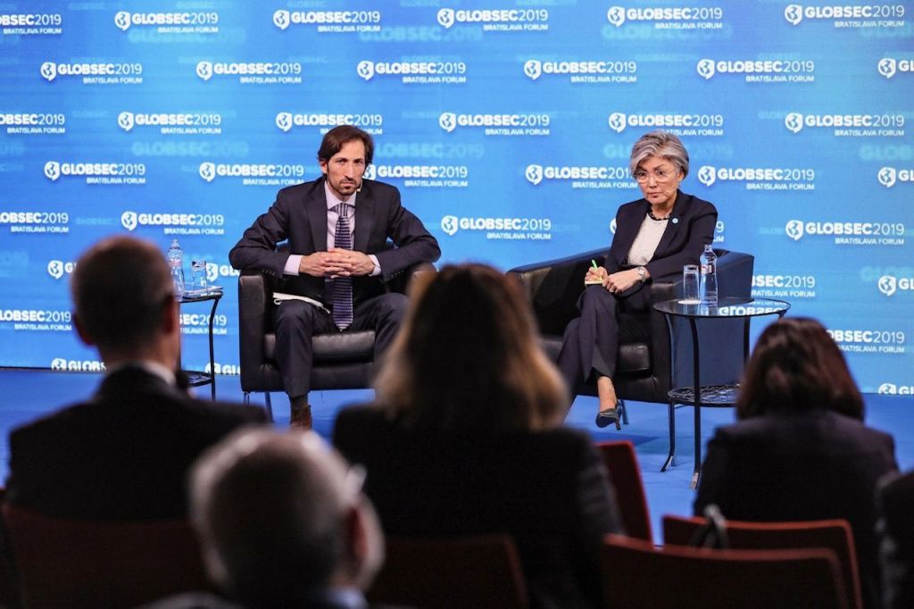 이날 외교부는 강 장관이 슬로바키아 브라티슬라바 그랜드호텔에서 열린 'GLOBSEC 글로벌 안보포럼'에 참석해 포린 어페어스 편집장인 저스틴 보트와 한반도 문제에 관한 1:1대담을 진행했다고 밝혔다.