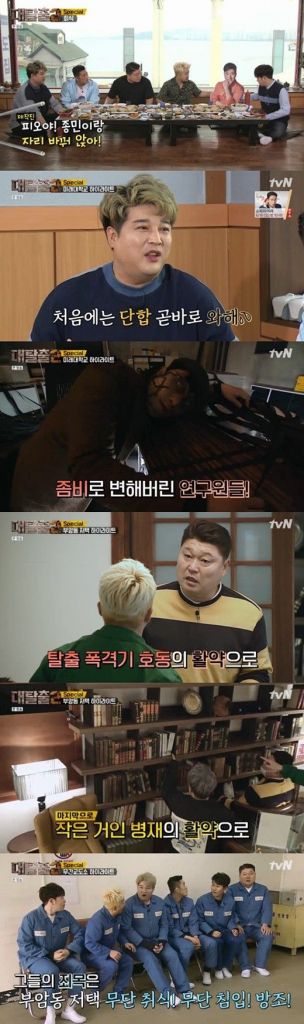 9일 방송된 tvN ‘대탈출2’에서는 멤버들이 그동안의 에피소드를 회상하는 모습이 그려졌다. 이날 강호동은 ‘무간교도소 편’을 언급하며 촬영 당시 음식 맛이 느껴지지 않았다고 밝혔다.