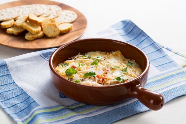 5. 치즈 딥이 뜨거울 때 크래커와 빵을 곁들여 낸다.