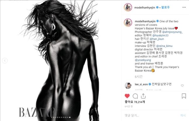 이시언은 20일 공개된 한혜진의 '하퍼스 바자' 7월 화보 게시글에 "진짜 달심됐네” 라는 댓글을 남겨 이목을 집중시켰다.