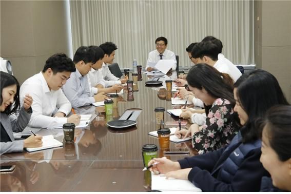 정 대표는 "어떤 이야기라도 좋으니 편하게 대화하자"며 분위기를 주도했다. 그는 직원들의 물음에 자세하게 설명하고 답변하면서 좋은 아이디어는 수첩에 기록했다. 직원들은 보고서를 작성하는 과정에서 겪는 업무 증가, 휴가 관련 애로사항 등 여러 가지 내용들을 토로했다.