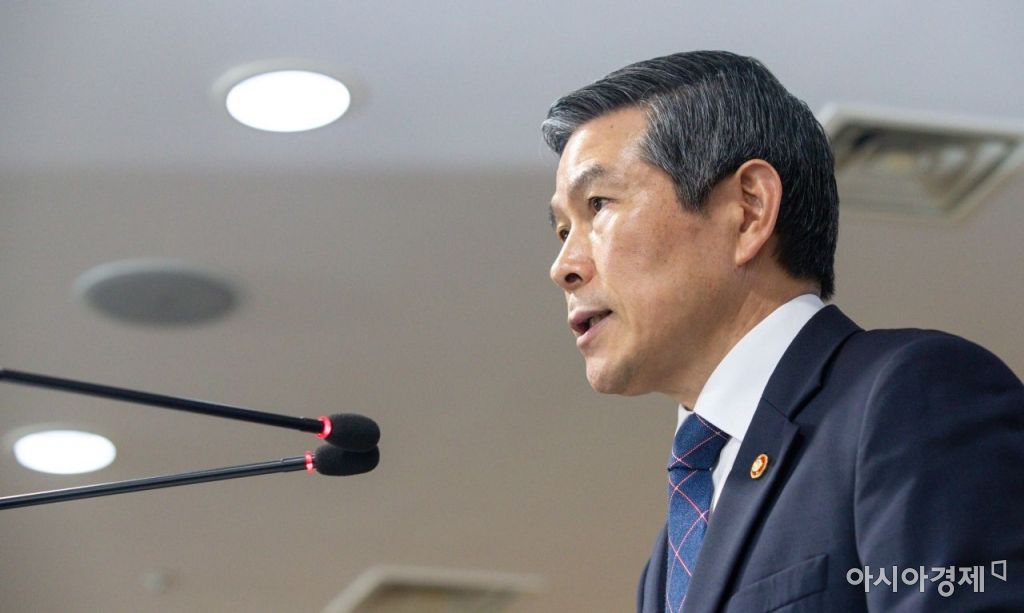 정경두 국방부 장관이 3일 서울 종로구 정부서울청사에서 최근 논란이 되고 있는 강원도 삼척 어선 귀순과 관련해 대국민 사과문을 발표하고 있다./강진형 기자aymsdream@