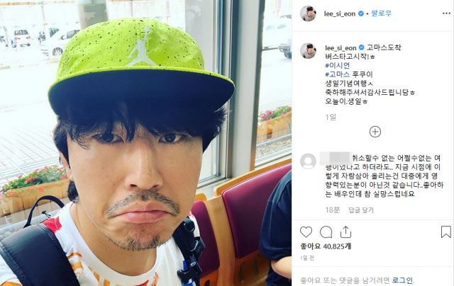 [아시아경제 김윤경 기자] 배우 이시언이 일본 여행 사진을 게시해 논란을 빚었다. 한국 국민들이 일본의 경제 보복에 대응하고 있는 가운데 이시언이 자신의 SNS에 일본 여행 사진을 게시했기 때문이다.