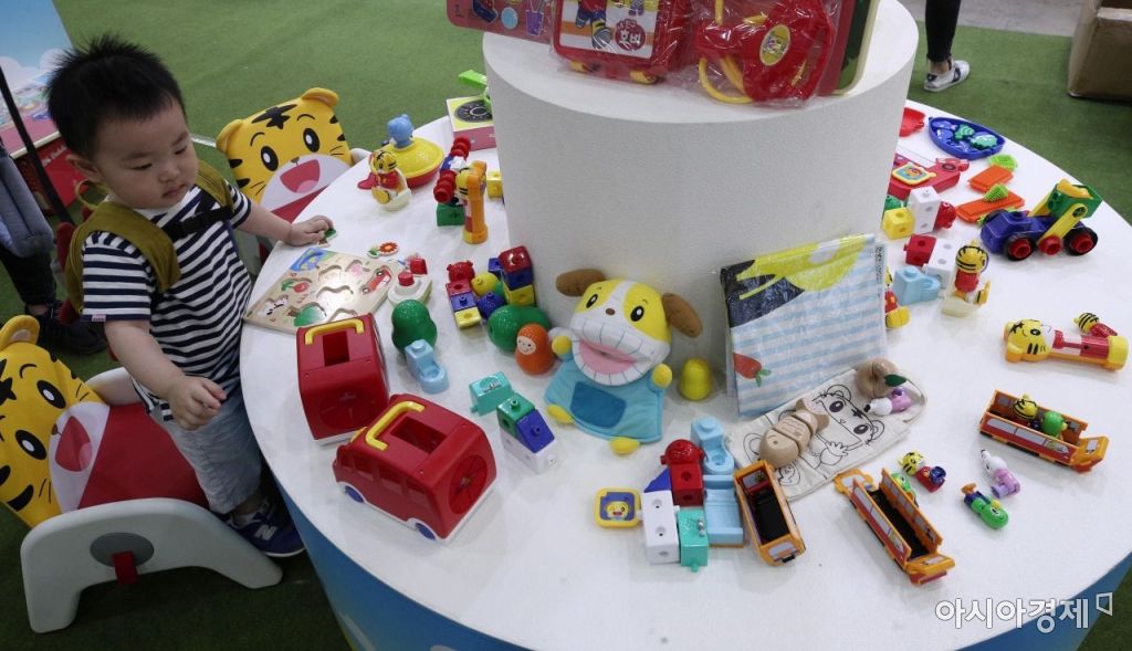 11일 서울 강남구 코엑스에서 열린 제43회 서울국제유아교육전&키즈페어에서 한 아이가 다양한 놀이용품을 바라보고 있다./김현민 기자 kimhyun81@