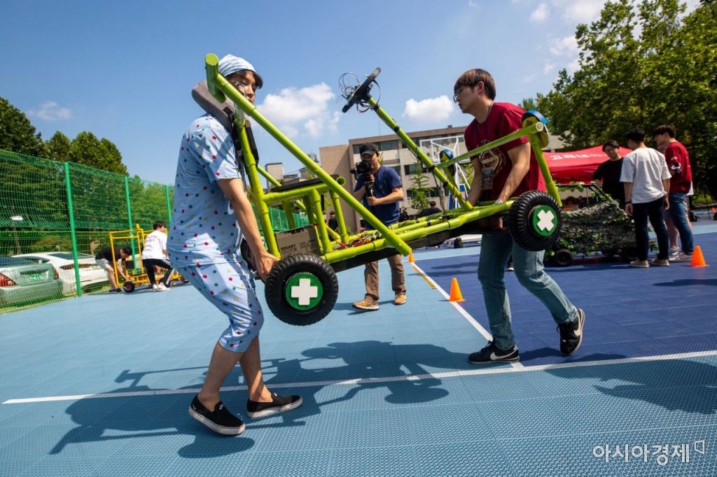 12일 서울 성북구 고려대 자연계캠퍼스에서 고려대 미래자동차 해커톤에 참가한 학생들이 직접 만든 전기자동차 운행 시연 하고 있다./강진형 기자aymsdream@