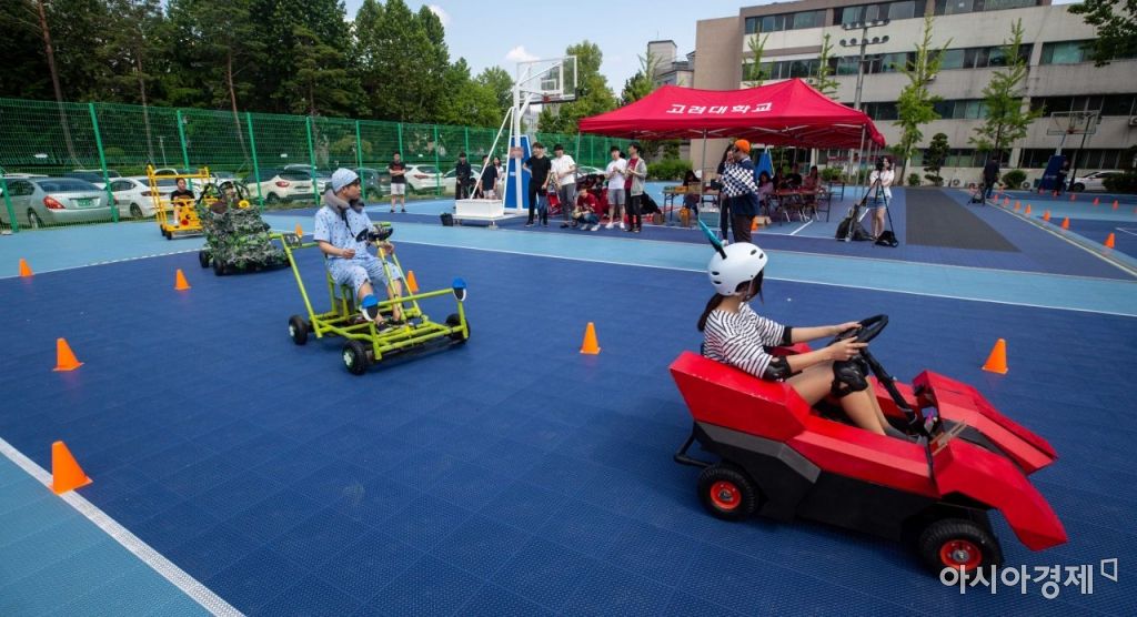 12일 서울 성북구 고려대 자연계캠퍼스에서 고려대 미래자동차 해커톤에 참가한 학생들이 직접 만든 전기자동차 운행 시연 하고 있다./강진형 기자aymsdream@
