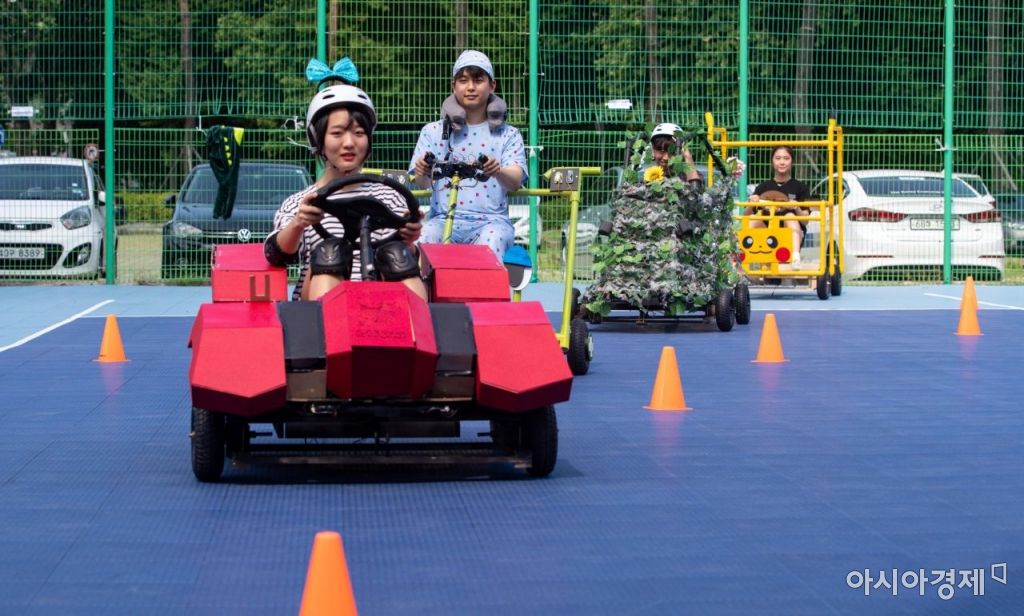 12일 서울 성북구 고려대 자연계캠퍼스에서 고려대 미래자동차 해커톤에 참가한 학생들이 직접 만든 전기자동차 운행 시연 하고 있다./강진형 기자aymsdream@