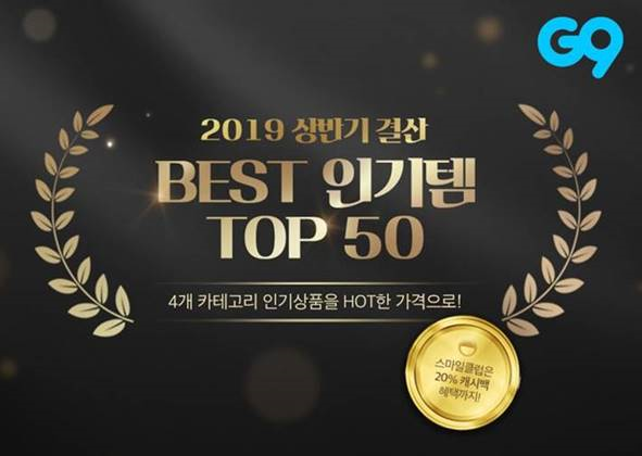 ‘베스트 인기템 TOP 50’은 2019년 1월부터 6월까지 뷰티, 패션, 리빙, 식품 등 총 4개 카테고리를 대상으로 판매실적을 반영해 G9가 선정한 순위다.