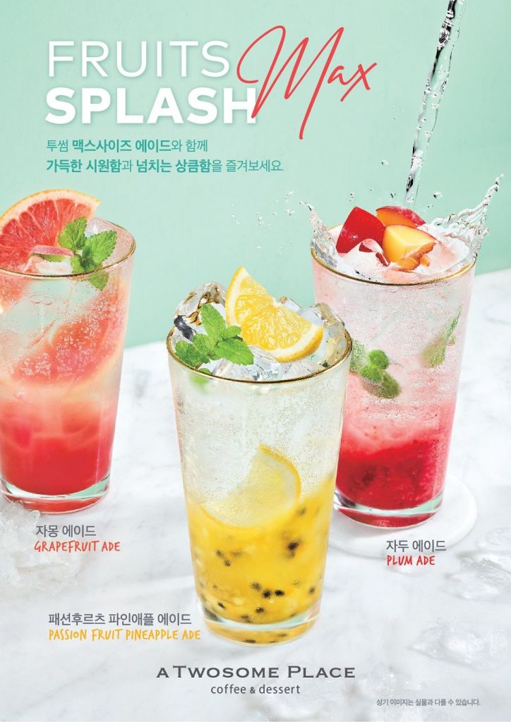 투썸은 ‘자몽 에이드’를 비롯해 총 4종의 에이드를 판매하고 있다. 지난해 여름 시즌 메뉴로 출시한 ‘레몬 셔벗 에이드’와 ‘상그리아 에이드’는 높은 고객 호응으로 상시 판매 메뉴로 자리 잡았다. 특히 지난 여름 에이드 매출이 전년 대비 약 50% 오르는 등 에이드 제품의 인기가 높아지는 추세다.