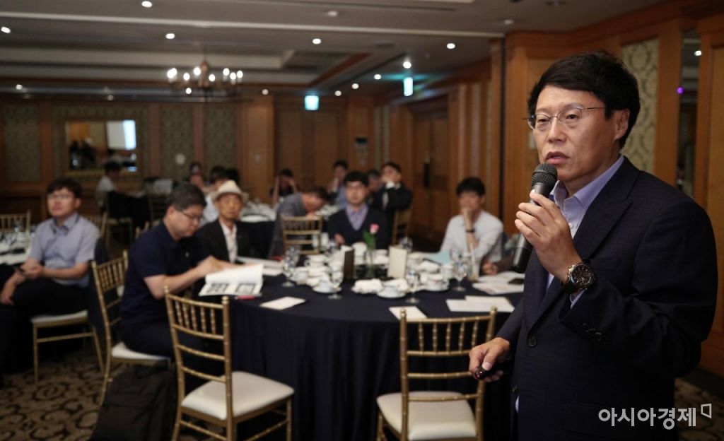 17일 서울 강남구 임페리얼팰리스호텔에서 중소벤처기업부, 벤처기업협회 주관으로 열린 '시스템반도체. i-CON(개방형 혁신네트워크) OPEN 세미나'에서 박재근 한양대 교수가 '시스템반도체 분야 국내현황 및 협력방향 제안'을 주제로 발표하고 있다./김현민 기자 kimhyun81@