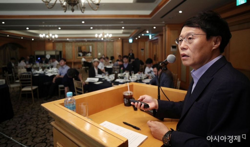 17일 서울 강남구 임페리얼팰리스호텔에서 중소벤처기업부, 벤처기업협회 주관으로 열린 '시스템반도체. i-CON(개방형 혁신네트워크) OPEN 세미나'에서 박재근 한양대 교수가 '시스템반도체 분야 국내현황 및 협력방향 제안'을 주제로 발표하고 있다./김현민 기자 kimhyun81@