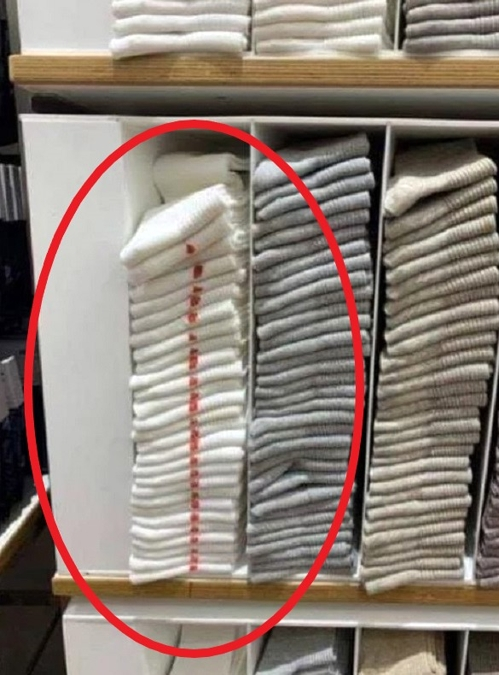 수원 유니클로 매장에서 빨간 립스틱으로 훼손된 양말. 사진=온라인 커뮤니티