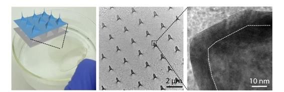 연구진은 멤브레인 반도체를 입체 구조로 만들기 위한 연구를 진행했다. 우선 10㎚(나노미터) 크기의 바늘모양 돌기들이 규칙적으로 정렬된 지름 4인치 크기 기판을 제작했다. 그 위에 유기금속화학증착법을 이용해 24시간가량 천천히 '이황화몰리브덴'을 증착시켰다. 그 결과 몰리브덴 원자 1개와 황 원자 2개가 정확히 층을 이뤄 균일한 두께로, 기판 위에 대면적 멤브레인 반도체를 만드는 데 성공했다. 2차원 반도체의 X-Y축 평면에 Z축 성분인 돌기를 더해 3차원이 된 것인데 이는 세계 최초의 3차원 원자층 반도체다. 원자층 반도체에 3차원으로 기하적 변형을 가하면 새로운 기능을 부여할 수 있어 효용이 크다.