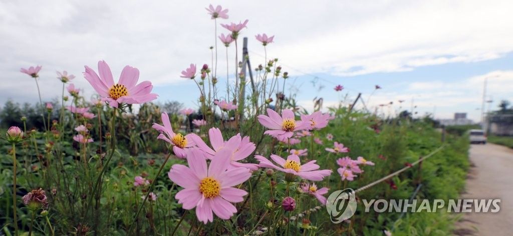 입추를 하루 앞둔 7일 경기도 파주시에 있는 한 농노길에 코스모스가 피어 있다./사진=연합뉴스