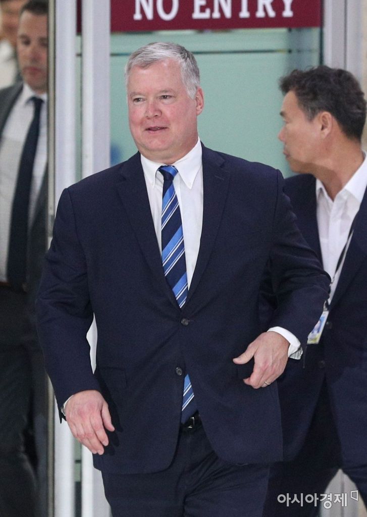 미국 측 대북 실무협상을 총괄하는 스티브 비건 미 국무부 대북특별대표가 20일 서울 김포국제공항을 통해 입국하고 있다./강진형 기자aymsdream@