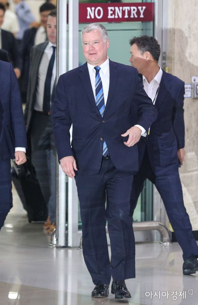 미국 측 대북 실무협상을 총괄하는 스티브 비건 미 국무부 대북특별대표가 20일 서울 김포국제공항을 통해 입국하고 있다./강진형 기자aymsdream@
