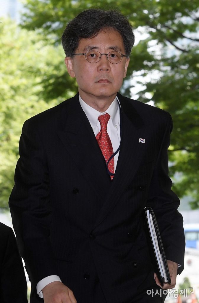 김현종 청와대 안보실 2차장이 22일 스티븐 비건 미 국무부 대북특별대표와 면담하기 위해 서울 종로구 정부서울청사로 들어서고 있다./김현민 기자 kimhyun81@