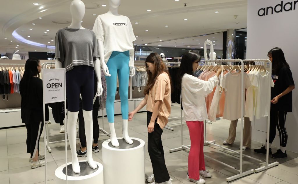 레깅스 뿐만 아니라 요가복, 필라테스복, 런닝웨어 등 다양한 애슬레저룩을 ‘안다르’ 매장에서 만나 볼 수 있다.