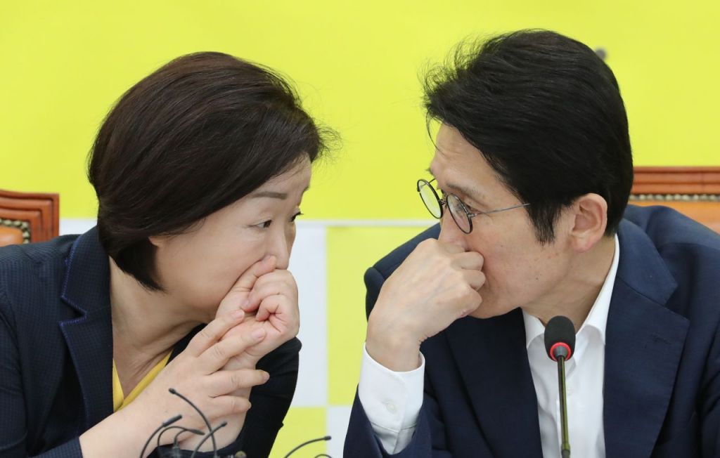 심상정 정의당 대표(왼쪽),윤소하 정의당 원내대표