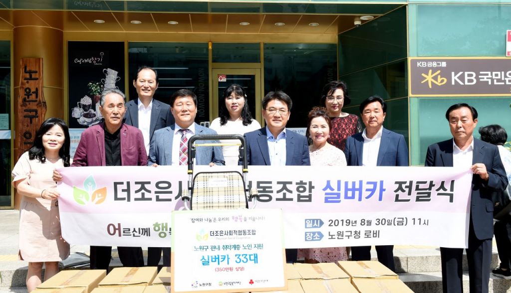 이날 행사는 더조은사회적협동조합이 지역내 어르신들을 위해 실버카 33대(350만원 상당)를 후원, 마련된 자리로 구청장을 비롯 김돈식 더조은사회적협동조합 이사장, 노원교육복지재단 이사 등이 참석했다.