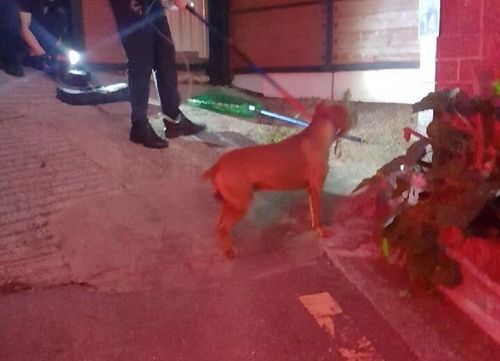 이웃을 공격한 맹견을 119 구조 대원이 포획하고 있다./사진=부산경찰청 제공