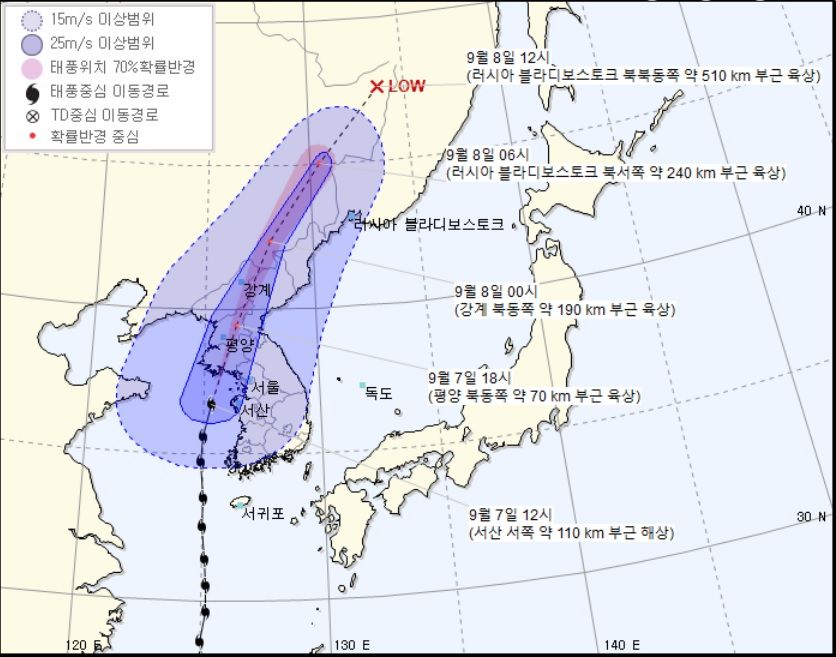 오후 4시 기준 서울을 비롯해 세종, 인천, 충북(증평, 음성, 진천, 청주), 충남(당진, 홍성, 보령, 서산, 태안, 예산, 청양, 아산, 공주, 천안), 서해5도, 경기도, 서해중부전해상 등에 태풍경보가, 대전, 충남(서천, 계룡, 부여, 금산, 논산) 등에 강풍경보가 내려지는 등 전국 곳곳에 기상특보가 발효돼 있다.