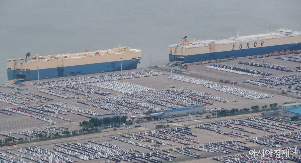 민족 최대 명절인 '추석'을 이틀 앞둔 11일 경기 평택항에서 수출 차량이 선적을 기다리고 있다. (항공촬영 협조 : 서울지방경찰청 항공대 이용길 경감, 경기북부지방경찰청 박형식 경위)/강진형 기자aymsdream@
